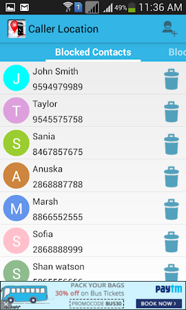 List of Contacts with Area & operator name. View list of your Call Logs Area & operator name. Use Free Caller ID & Block Calls App to block Spam Calls.