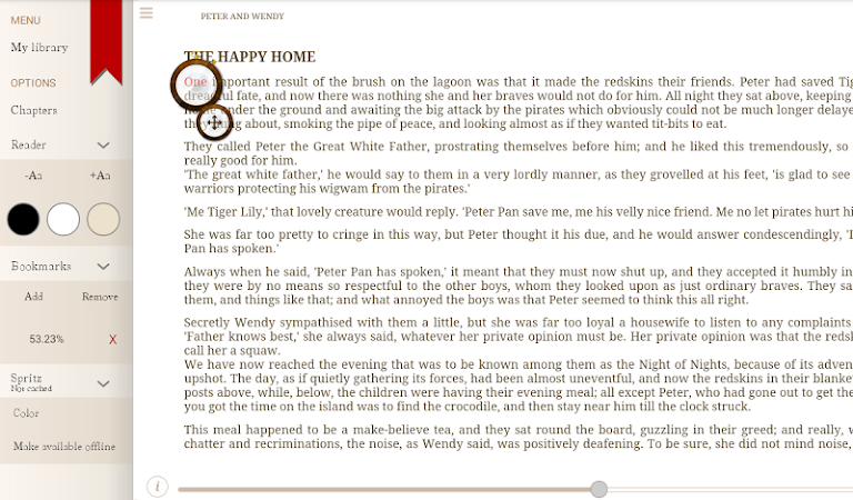 Spritz requires an internet connection. Offline reading with Spritz is available for ReadMe! Premium accounts.